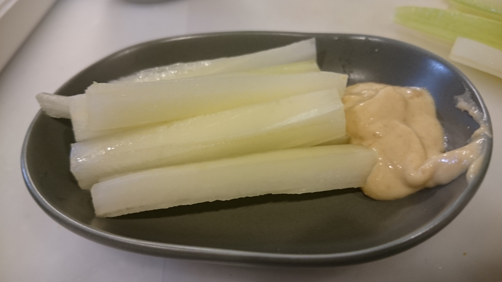 スティック野菜と2種類のディップソース momoの台所 ドイツの食生活だより